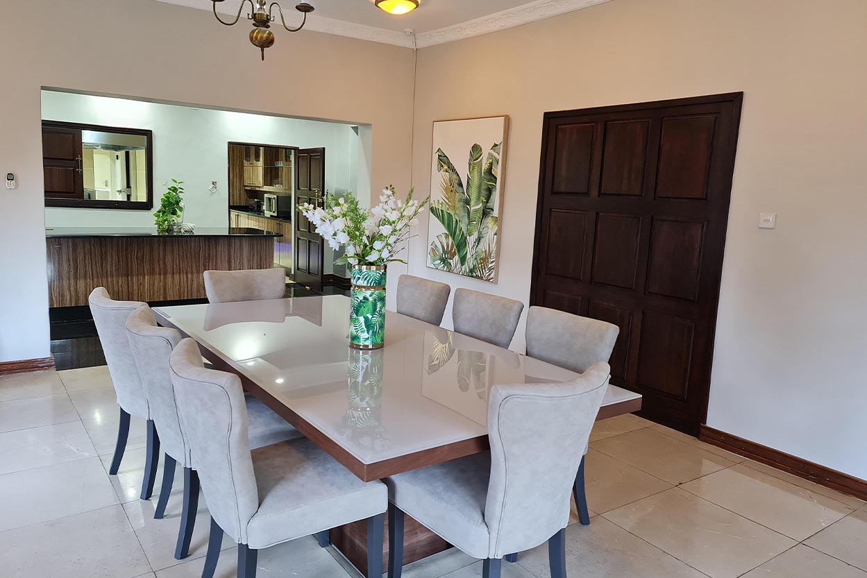 The Royal Manor is an elegant, spacious, and luxurious 4-bedroomed boutique residence located in Highlands, Harare. This lush boutique residence delivers a peaceful and serene environment where you and your loved ones will feel the warm hospitality of the Royal Manor.